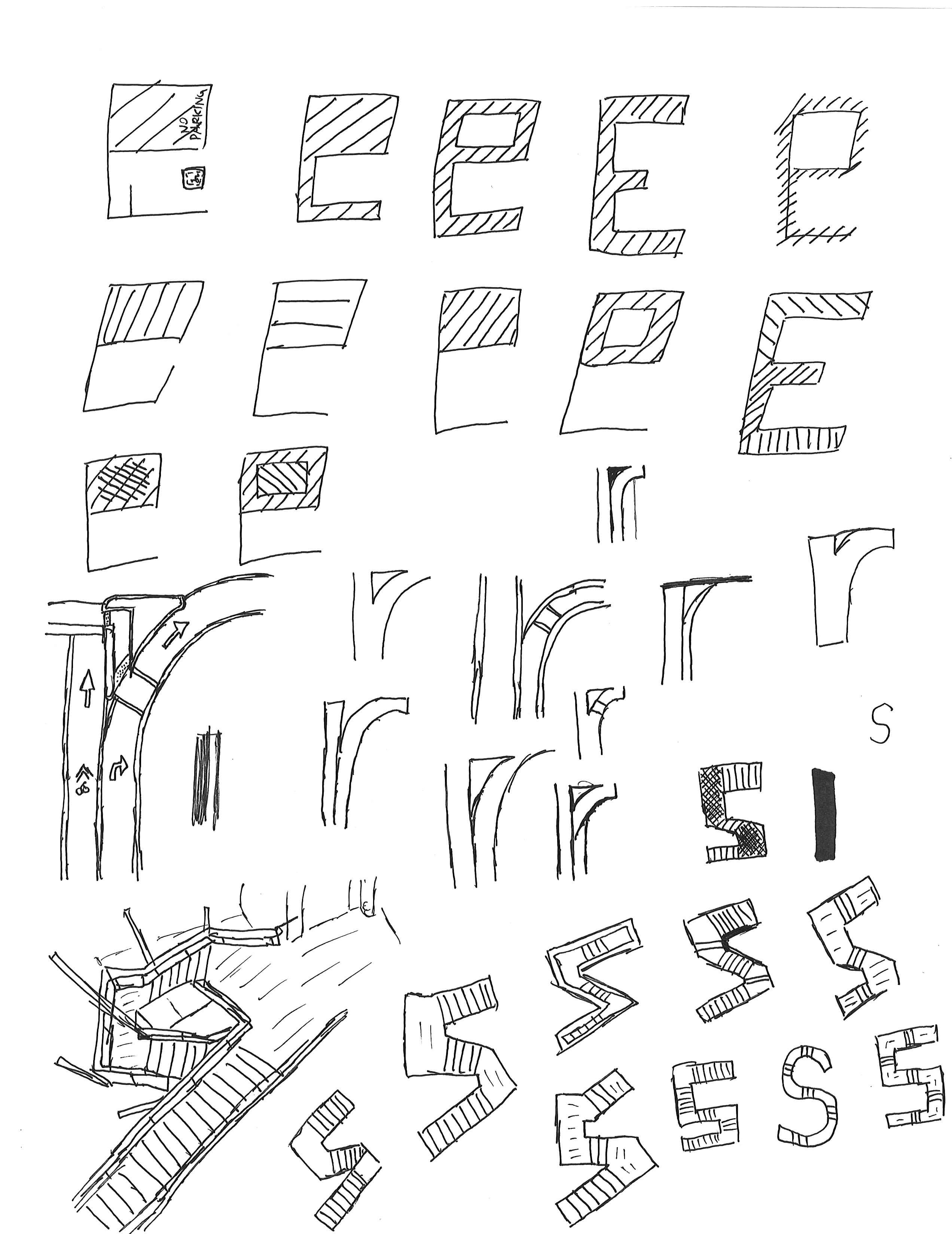 During the summer of 2017, I attended one of Art Center's many Summer Intensives: BrandCamp. It was a program that took a deep dive in Graphic Design and Branding. This project was created during class and aimed to make letters from objects found in our everyday surroundings. We spent the morning exploring campus and taking pictures of things that looked similar to letters. I was assigned to 3 letters, E, R, and S. The E, in this case is a sideways handicapped parking spot, the R is the right turn lane of a freeway entrance, and the S is a staircase. I experimented with different ways to express the letters through the images.
