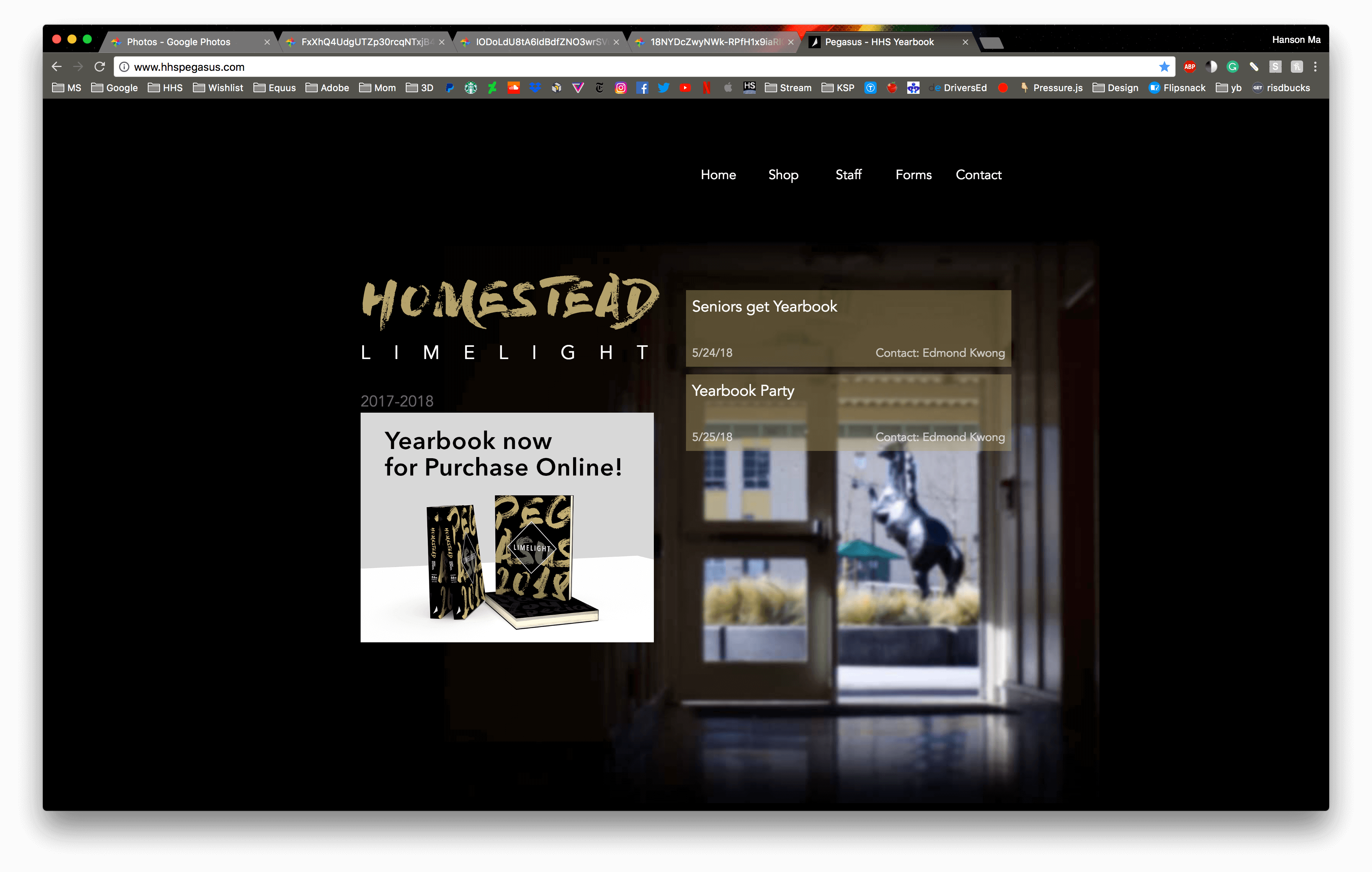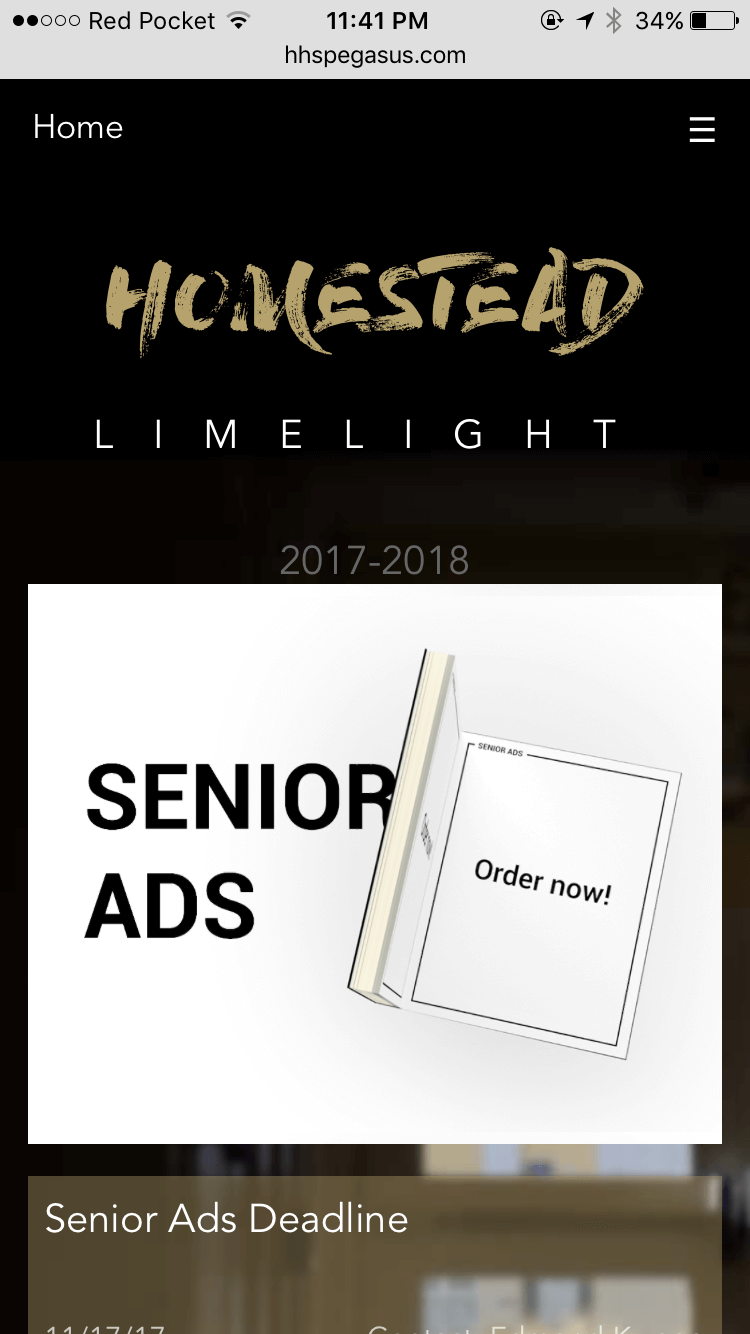 This project was a collaborative effort among 14 students. The Homestead Yearbook, or any yearbook, captures everything that happened in the school during the year. Throughout the creation of the yearbook, I was put in charge over designing the cover, front endsheet, opening, divider, colophon, closing, and back endsheet. Our yearbook theme for that year was "Limelight", in which we wanted to capture the little things, put a spotlight on the things you don't normally see. I utlilized the design concept of the rotated square as a "limelight". I put the square infront of a faded image and a colored image infront of the square to give the illusion of a popout.